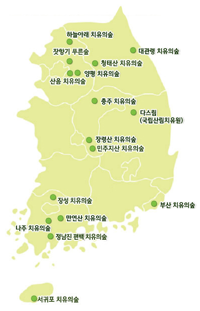 치유의 숲 현황(자료출처 : 산림청 홈페이지)